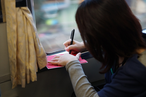 早上不到七點,志工們已在自強號上開始寫給獨長賀歲卡片,要寫給完全不認識的長輩,也要絕對的勇氣。