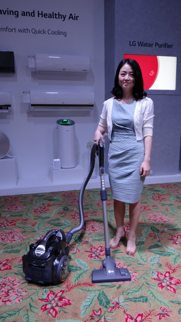 LG高階CordZero系列吸塵器,會自動跟著使用者前進。(記者吳佩樺攝)