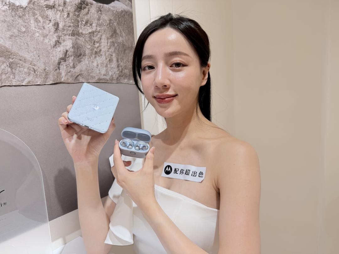 施華洛世奇聯名版以套組販售,包含razr 60手機和耳機。(圖/記者吳佩樺攝)
