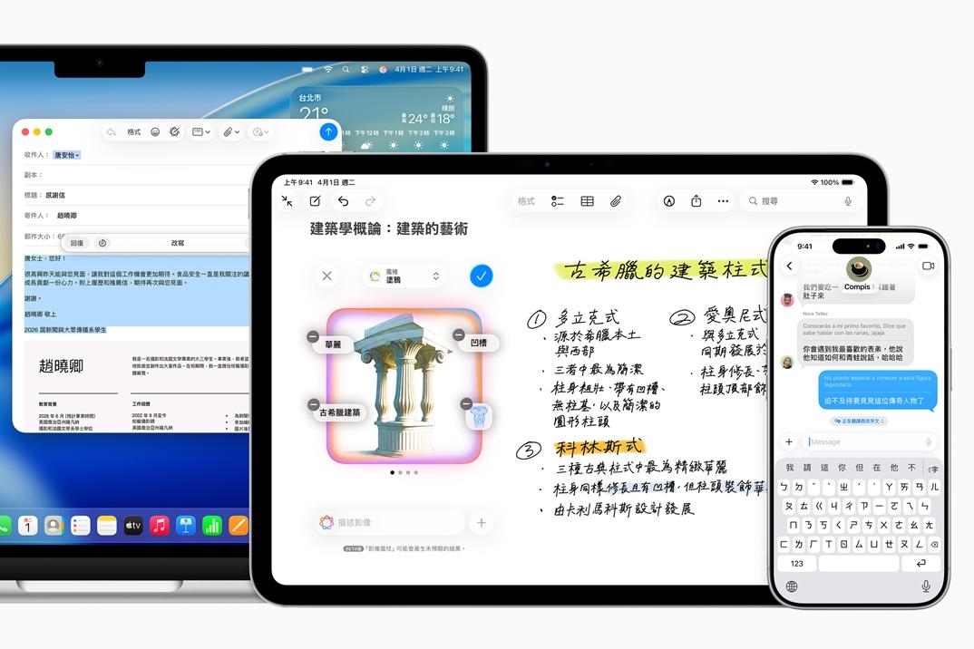 Apple Intelligence整合於iPhone、iPad和Mac。(蘋果提供)