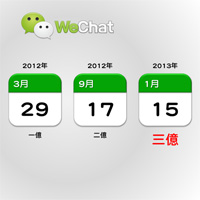 WeChat 自 2010 年上市,僅以 433 天即達到全球一億使用帳戶的目標、六個月後直飆二億;今日正式宣布: WeChat 目前已拓展至全球各大洲多個國家、支援 18 種語言版本、全球註冊使用帳戶突破三億大關! WeChat 社群通訊風潮已迅速席捲全球,成為不容小覷的全新勢力,勢必影響手機通訊發展的未來。台灣自 2012 年 11 月起,邀請天王天后-羅志祥、楊丞琳為 WeChat 年度代言人,深獲年輕族群的喜愛, WeChat 不斷求新求變,舉辦各類型深度產品體驗活動,如耶誕跨年期間的《一人一句 溫暖台北》官方帳號,號召以溫暖聲音為彼此祝福,數萬則留言成功創造活動佳績。 WeChat 更是台灣市場上真正免費提供社群通訊、語音訊息、即時視訊通話與動態貼圖的社群通訊平台。