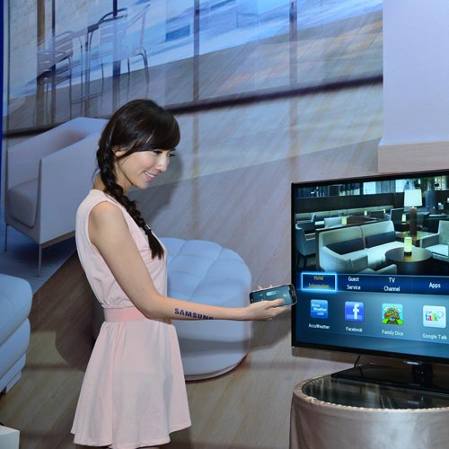 透過三星行動裝置與客房內的商用電視,並搭載 LYNKTM 應用程式即能提供高度客製化的客房服務,讓房客輕鬆透過 Samsung GALAXY 平板或智慧型手機等行動裝置享受便利又個人化的私房住宿經驗。 Samsung LYNKTM 可遠端管理旅遊務業的電視網路,管理人員可於房客入住期間,針對房客需求及偏好個別設定。 Samsung 商用電視可提供飯店業者即時顯示針對房客設定客製化電視頻道內容,包含歡迎標語、飯店季節性方案/設施等服務,輕鬆傳送至客房電視,房客只要手持 Samsung GALAXY S4 即可遙控客房內的各項裝置,並可透過 AllShare 將手持裝置內容同步至客房電視播放,即時家人朋友分享旅程中記錄下的美好時光。而將手提包內的 GALAXY 行動裝置插上底座,即可快速透過鍵盤和滑鼠進行文書處理。